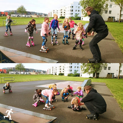 Het is leuk voor alle niveaus, of je nou nog nooit geskate hebt, of het al heel goed kan. Wij dagen de hele groep met leuke oefeningetjes uit op hun eigen niveau.