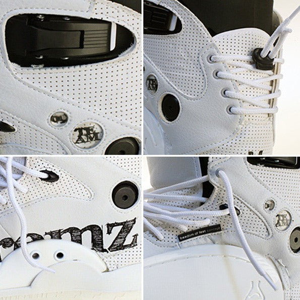 The 09-1 skin features a fresh and clean Remz-style design incorporating the Remz rear lacing system pioneered by Chris Haffey and back by popular demand, a redesigned and reinforced buckle opening, a cuff bolt opening, and a wide lacing in the front for optimum foot support.