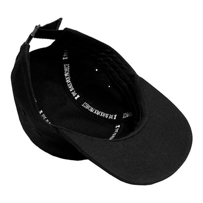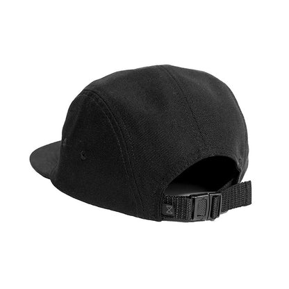 Black 5panel with Black embossed Sanduhr Logo (fake leather) Patch in the front.