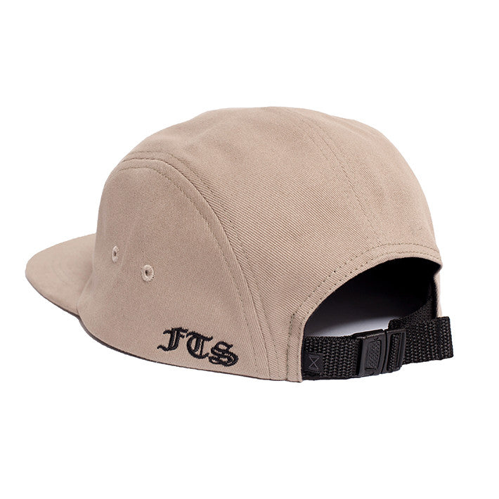Sand colored hat with FTS signature pigeon on the front and FTS Logo on the side.