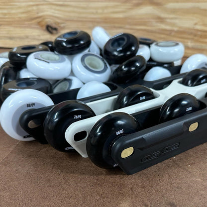 Exclusive flat round profile designed for the optimal balance of stability and acceleration. 56mm to fit all low profile frames on the market, but amazing on Prime frames. The 92A hardness provides a long lasting ride with less wheel bite.