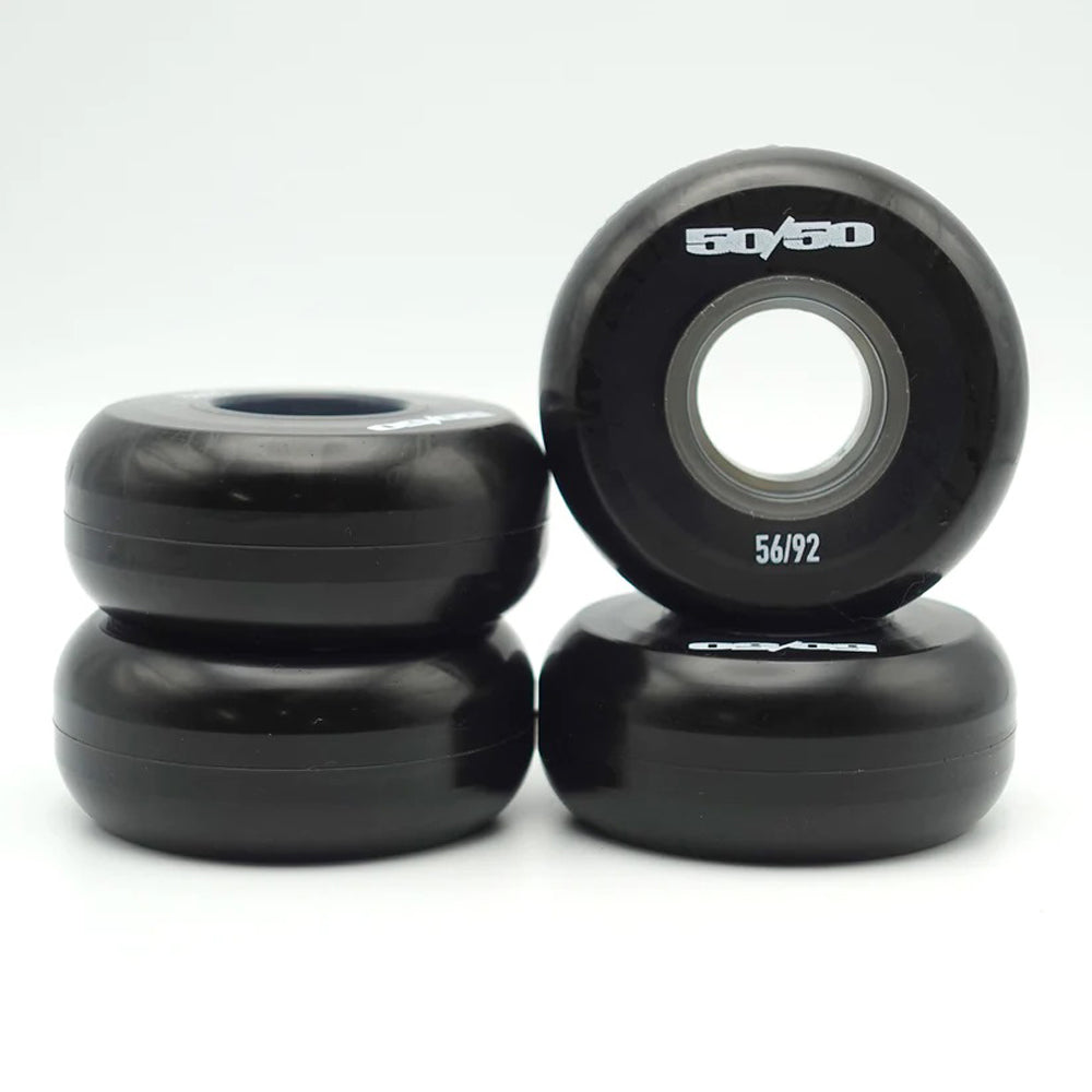 Exclusive flat round profile designed for the optimal balance of stability and acceleration. 56mm to fit all low profile frames on the market, but amazing on Prime frames. The 92A hardness provides a long lasting ride with less wheel bite.