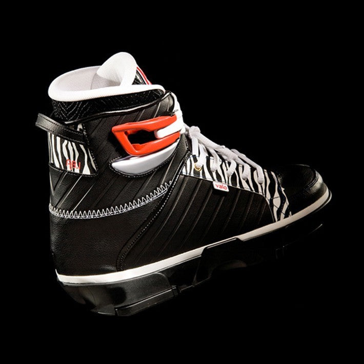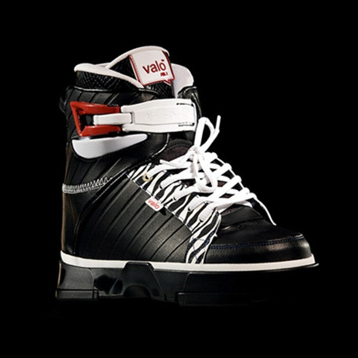 Alex Broskow Pro Model Designed by Alex Broskow.Valo brings COLOR to the 08’ collection2 Colorways Black colorway and Blue colorwayZebra patterned and snake skin pattern lace systemSingle gold eyelitIndented/lined leatherSnake skin and zebra pattern-form fitting linerT hicker padding Rubber line soulStandard lower cuff for improved flexibilityReplaceable soul and backslideMemory buckleAvailable boot only for customizationExtra sea foam green laces included (not pictured)Lucky rabbit’s foot included (not pictured)- Alex Broskow Pro Model Designed by Alex Broskow.