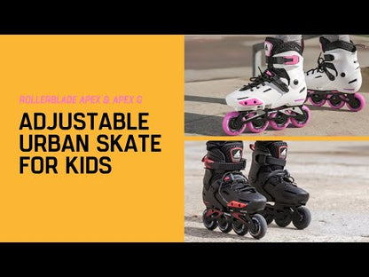 Fury is an urban-inspired kids skate that adjusts four full sizes. A lightweight, molded structure adds lateral support for novice skaters while 72mm/80A wheels paired with SG3 bearings provide a good balance of speed and control. The cuff buckle and powerstrap ensure a secure closure system; brake is standard. Value pricing makes Fury an outstanding entry-level skate for kids.