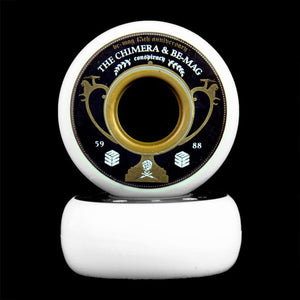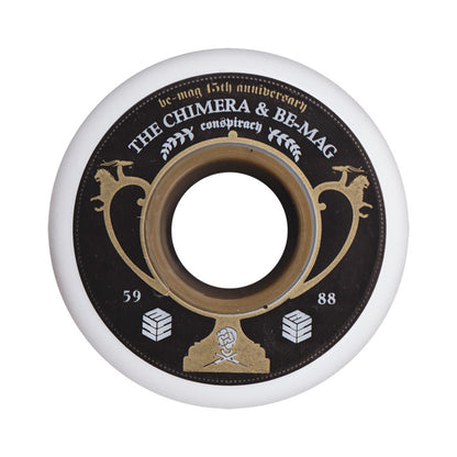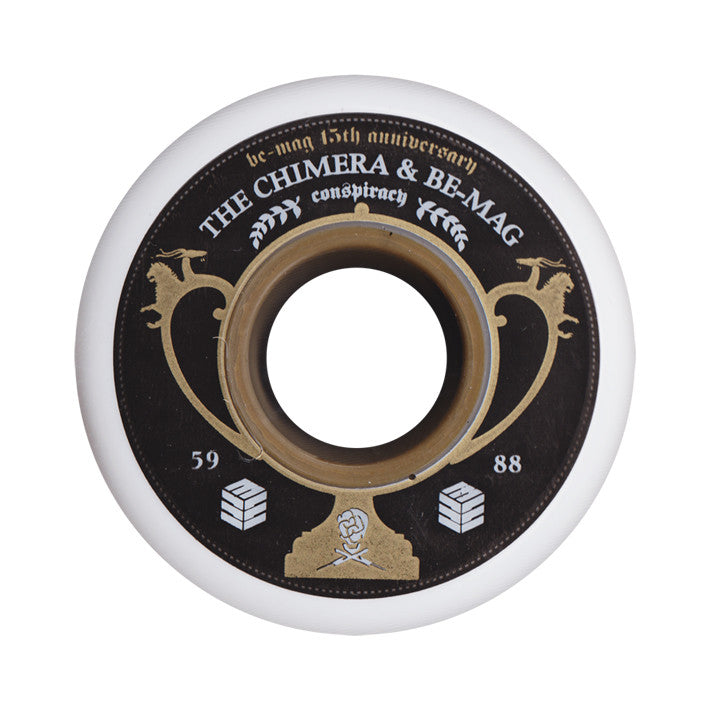 This Chimera x Be-Mag Collaboration wheel features a graphic of trophy celebrating the 15 year anniversary of the Be-Mag brand.