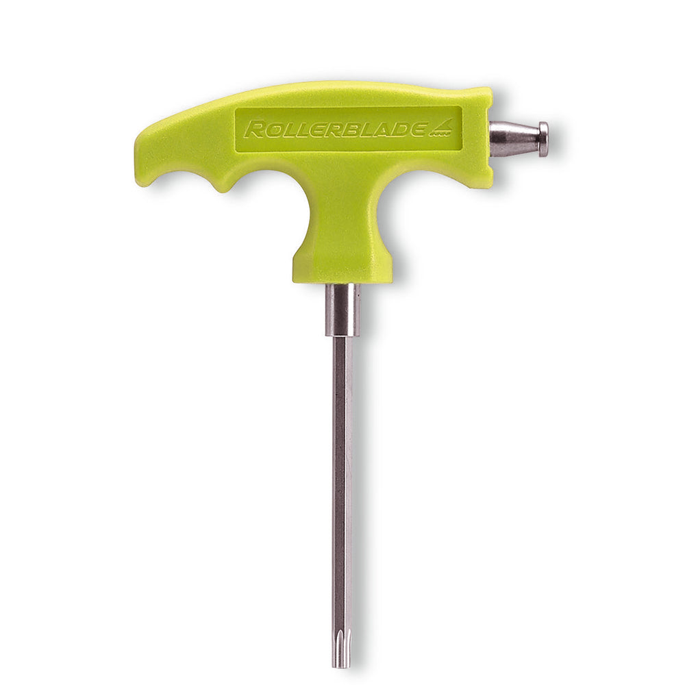 Bladetool Pro is a skaters best friend and provides everything one needs to tune up or replace wheels or bearings with ease and efficiency. Whether you skate for fun, to compete or train, this tool will benefit you. Many people rely on the free allen wrenches or try to find tools in their tool box to help tweak any skate issues but the Bladetool Pro has everything in a small and convenient package. The handle is anatomically shaped for a more secure and comfortable grip. The 4mm allen wrench actually is removable and can be conveniently stored in the magnetic, grooved handle while skating to avoid it getting separated or lost. The reverse side of the allen wrench features a torx key and the handle features a steel bearing tool for pushing and pulling them from wheels. This premium tool is also very durable and will make skating maintenance easier.
