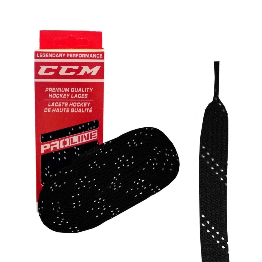 The CCM PROLINE Waxed Hockey Skate Laces are slightly waxed to offer a tight hold without being too rough on the hands or too tough to untie. This 10mm wide lace has molded waxed tips to prevent breakage and fraying.