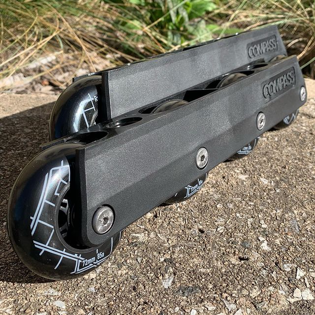 Introducing the Compass Blue Ridge frame. Designed for aggressive skaters to skate everywhere. It’s a UFS frame with a low ride height optimized for making big wheels on aggressive skates more fun.