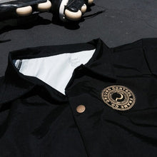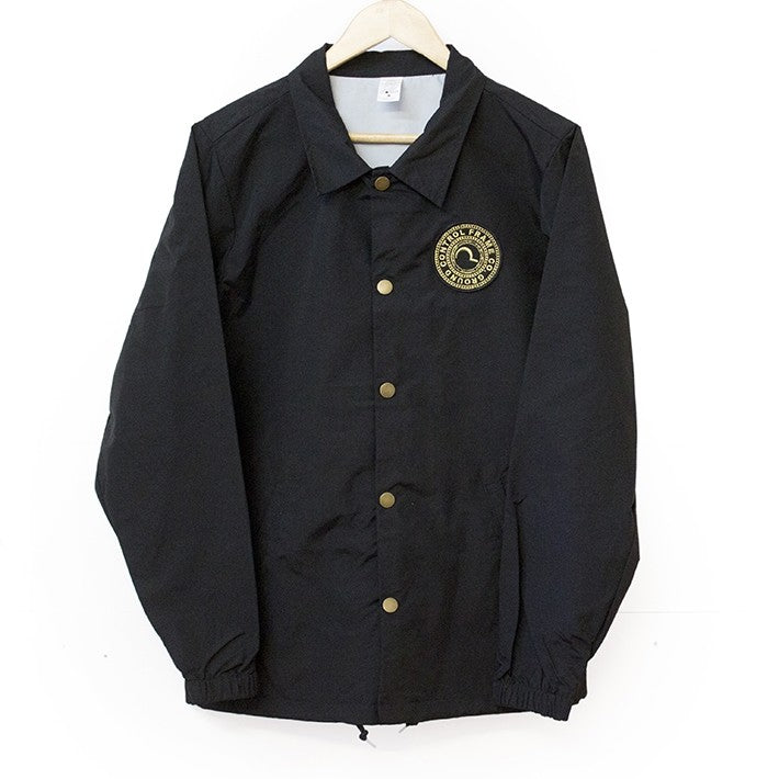 Available now and featuring a 100% nylon shell with water proof coating, antique brass eyelets and 6-snap front closure, drawstring closure at bottom opening and elastic cuffs. The GC Crest patch is sewn onto the left chest and an embroidered sickle logo sits just below the neck line on the back. This wind resistant and waterproof jacket is a great companion when out on a night skate or just hanging out with a beer by the bonfire.