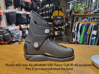 Size 41-42 will also fit on the Roces M12 43-44 if you shave the boot.