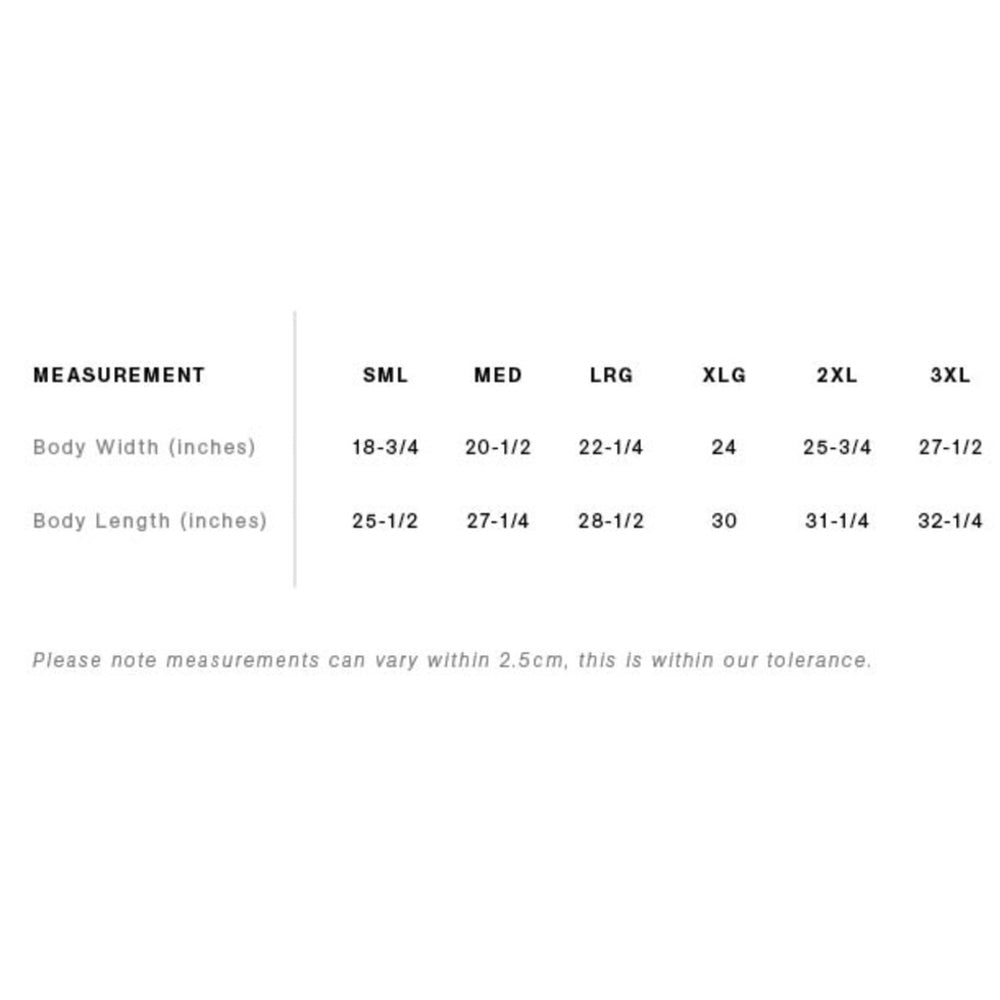 Crew neck, shorter body roughly 2" shorter than our standard Classic Tee, neck ribbing, side seamed, shoulder to shoulder tape, double needle hems, preshrunk to minimise shrinkage. Hang dry or low heat.