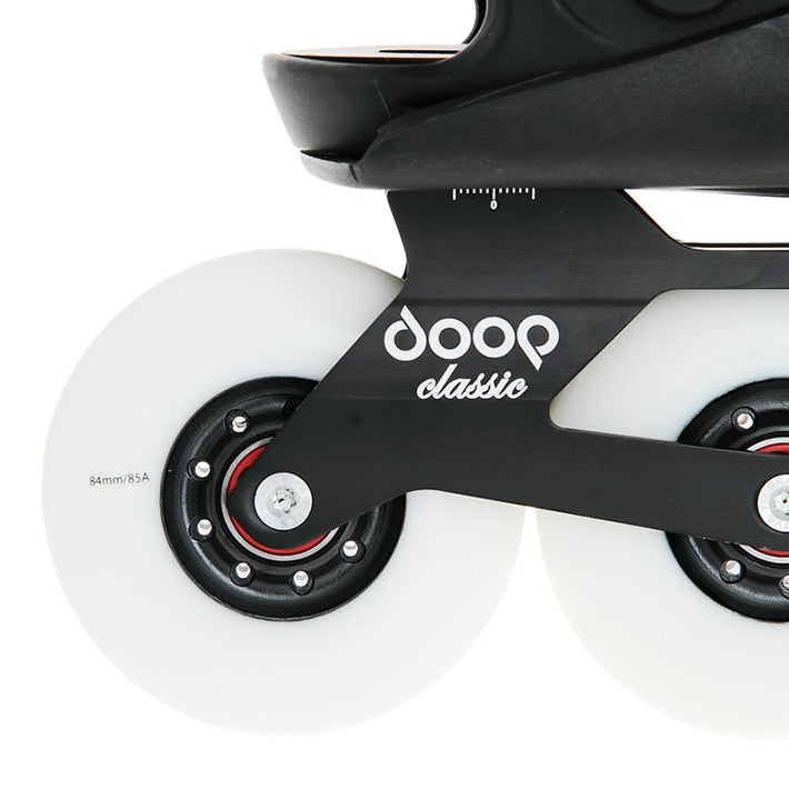 This page features all the Powerslide Doop models. This is an exoskeleton skate that wraps around your normal shoe. It has a trinity frame mount and is best suited for urban skating