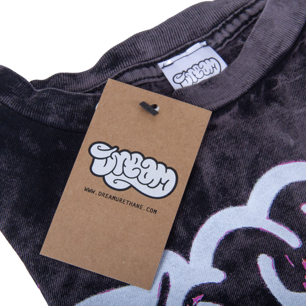 The Dream Sleep Shirt features a side-seamed design for shape retention and a unique vintage look achieved through special dye and mineral wash processes, resulting in intentional variations in texture, distress, and color. To maintain its quality and prevent color transfer, it should be washed separately and kept away from lighter fabrics and surfaces, following the provided care instructions.