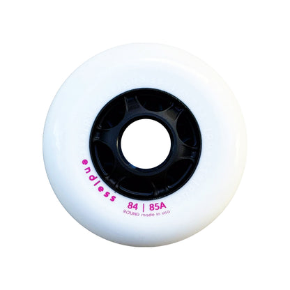 We believe the best skating experience is only realized when you have the best wheels on your skates. These premium Endless Round wheels are made in the U.S.A. with a high performance urethane formula that delivers an enhanced experience balancing stability, grip, wear, and sliding performance. This 84 mm wheel was specifically developed for our Arc 5-wheel frames, which require 2x84 mm wheels. The true round profile gives consistent grip and stability at all angles of attack, making it excellent for wizard and slalom skating. Edge transitions feel fluid and continuous. The core we chose for this wheel is rigid and responsive, but sized so that toe/heel wheelings and presses feel controllable.