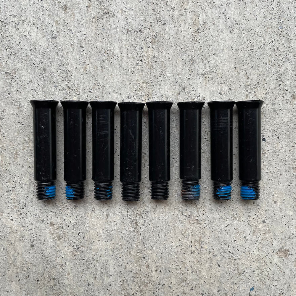 Aluminum Ultra Axles (8-pack) for Endless frames are an excellent upgrade to the stock steel axles that come with many of our frames. These are especially recommended for those that are seeking the absolute lightest setup possible. These may be compatible with non-Endless frames if they use a 50 degree countersink angle axle.