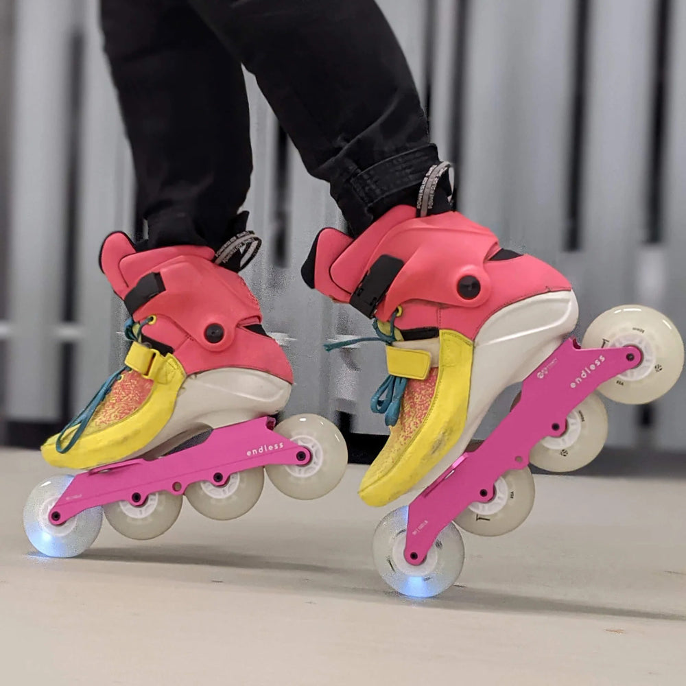 The Endless 90 LR Trinity Frame is a precision machined, multi-setup “Low Ride” frame designed specifically to elevate Powerslide TRINITY skates to the highest level of aesthetics and performance. The result is an even more enjoyable skate that offers the same acclaimed experience skaters across the world have been buzzing about since Endless launched. We are proud to be the very first brand to create freeskate frames for Powerslide TRINITY urban and recreational skates.