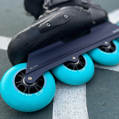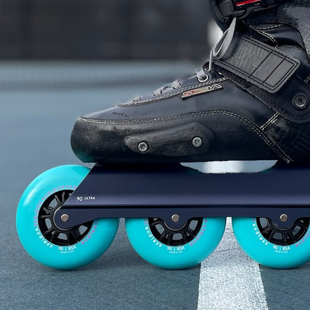 The Endless 90 Ultra UFS is the ultimate 4x90 mm frame for big wheel flow skaters who demand the best. It embodies the pinnacle of Endless Blading’s engineering expertise, delivering unmatched speed, responsiveness, and control which redefine the 90 mm big wheel wizard skating experience.