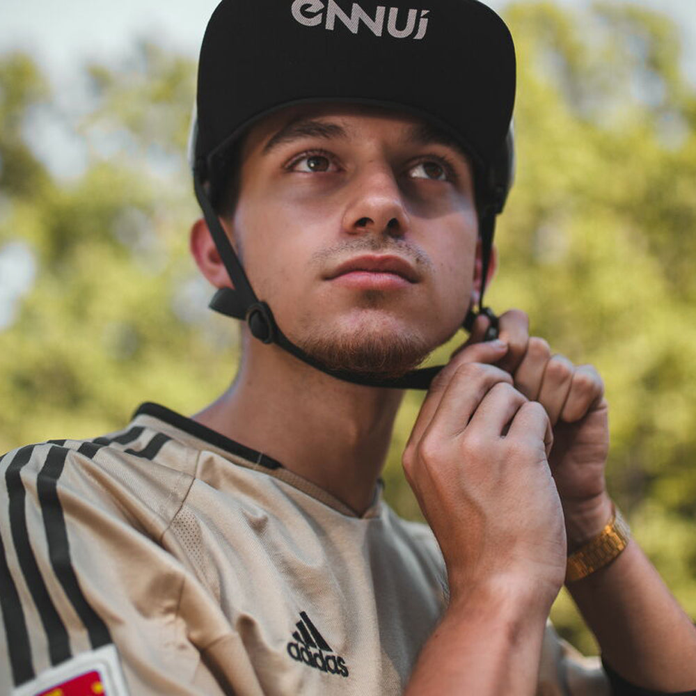 The ENNUI Elite Blue helmet is the perfect companion when you’re going big and pushing your limits whether you’re into inline skating, scoot riding, skateboarding, or virtually any other action sport. With the ENNUI Elite Blue helmet, there is no need to compromise, it’s lightweight, low volume, comfortable, and incredibly protective. While most helmets on the market are made of EPS foam injected in molds or separate parts and then glued together with an ABS or PVC shell. The ENNUI Elite Blue helmet is completely different. It took almost three years to develop, but ENNUI developed a process known as “over-injected honeycomb skeleton”. The innovative EPS honeycomb skeleton is then over-injected with PVC. The skeleton is not only strong, but it’s also lightweight and low volume which eliminates bulkiness while still being safe and comfortable. Have confidence when you’re pushing your limits and give the ENNUI Elite Blue Helmet a try which complies with the European safety standard for bicycle helmets.