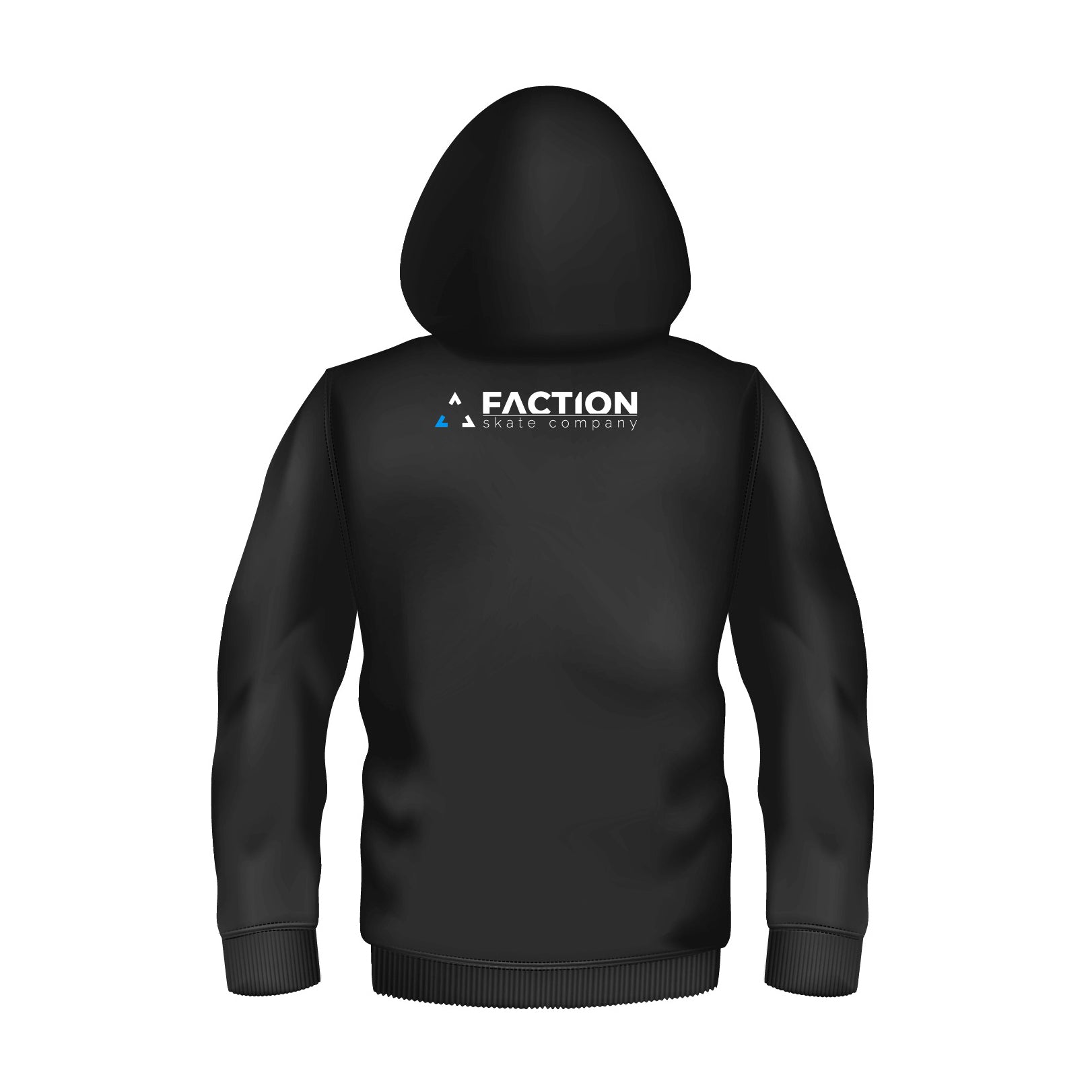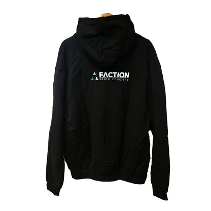 A lightweight zip hoodie, perfect for cool fall evenings on the backyard ramp. 80% cotton 20% polyester lightweight hoodie, rolling glyph art on front, and Faction Skate Company logo on the back.