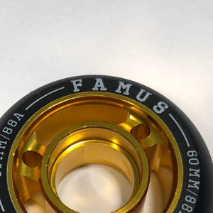 These unique Famus wheels might be the fastest wheels on the market. The Famus Metal Core Wheels 60mm are the first mass-produced metal core inline wheels to our knowledge, With the boom in scooter wheels made in this manner, it makes total sense for inline wheels to have a metal core.