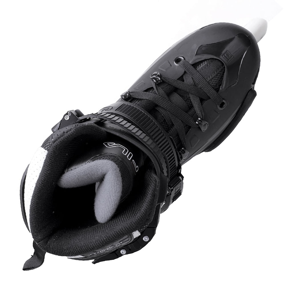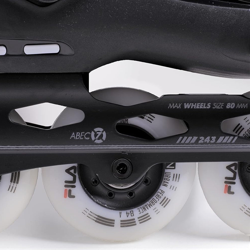 The injection molded shell, despite being very light, enhances performance, stability and durability. The liner, with it's soft and together sporty fit, ensures comfort and high technical standards. Shock absorber on the heel. Extreme Slider to protect the shell’s most exposed area. Diecast low profile chassis and 80mm wheels to increase maneuverability and control.- 243mm frame base