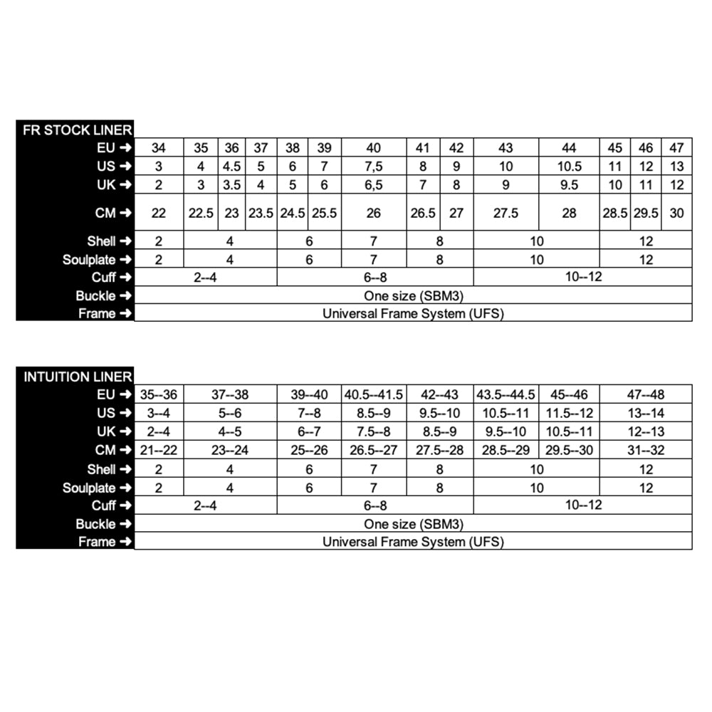 For UFR intuition skates the sizing is a bit different, because this liner creates more room in the skates, they had to change the sizing labels a bit.