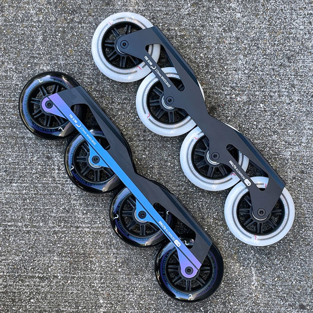 "GC FSK 80/90mm Frame black"Ground Control rolls into spring with a new UFS freeskate frame. Dubbed the 8090 Frame this fully flat frame was built with a 273mm wheelbase which we found works equally well with 80mm or 90mm wheels. Made with lightweight T6 Aluminum and HD Steel Axles.