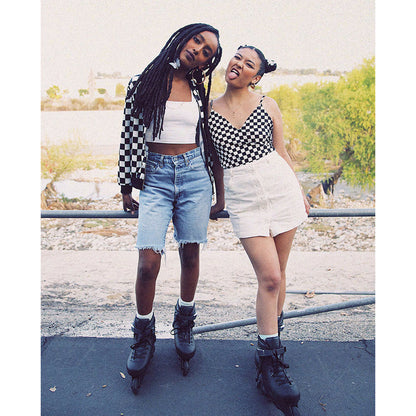 This category features all flat aggressive skates. Flat means that each skate has 4 wheels touching the ground. These skates are meant to grind with. any of these skates can be bought complete or as a boot only.