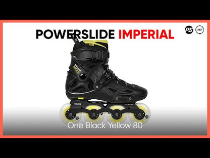 The Powerslide Imperial One Black Crimson inline skate is your elegant day-to-day skate. This Black Crimson freeskate scores with a very comfortable MyFit liner, which can be heat molded for optimized fit. The reinforced hard shell is very rigid & supportive, while its new Spider aluminum frame is low to the ground with great power transfer. Grippy 80mm Spinner wheels & fast Wicked Abec 7 bearings complete the package. All you need to skate, jump & slide.