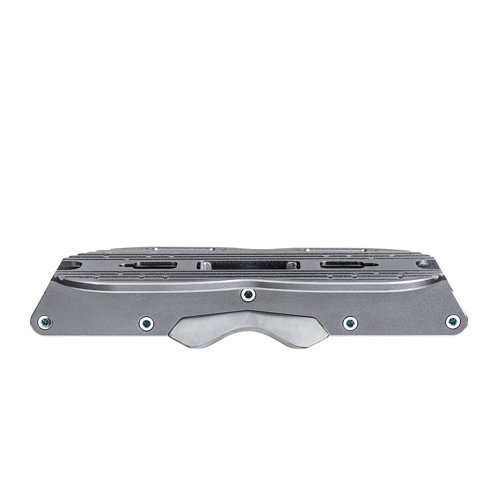 After the success of the USD Aeon skate, we took a close look at its design in the development of the new Kizer Soulframe 68. We wanted to lower the center of gravity whilst increasing the direct feeling of grinding. It is completely made out of aluminum for maximum energy transfer, faster grinds, and designed specifically for the high-speed park- or bowl skating and coping grinds. Like the Aeon it is a non-UFS unibody soul plate with an integrated frame, to achieve the lowest center of gravity and widest split for flat setups, making it lighter and stronger whilst using fewer parts. Plate and frame are made out of 6061 aircraft aluminum, CNC machined to perfection, and coming with the new Element II aluminum H-block. The Soulframe has predrilled and recessed mounting holes which are compatible fit most USD skates and also Salomons. The 68 version is designed specifically for 68mm and 64mm flat setups, making the Soulframe 68 one of the fastest and most stable flat setups available in modern aggressive skating.