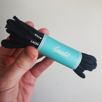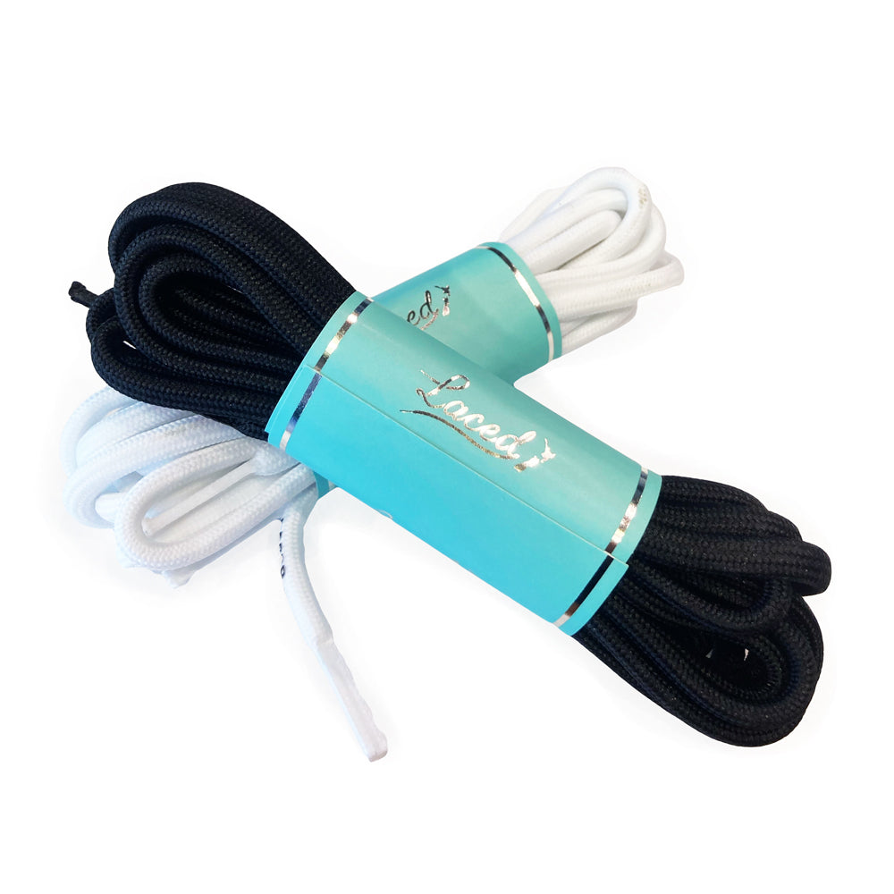 Waxed to give the same strength and hold as previous laces.(62inch) Only 1 size because you won’t want to wrap these around the cuff. This size will fit most skates. Quick Release! Round profile makes them easier to get out of once you are done skating. A different look on the skates. Available in black and white