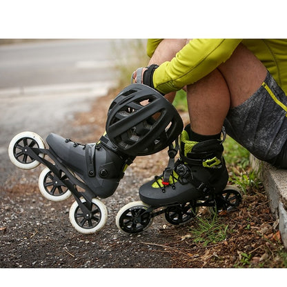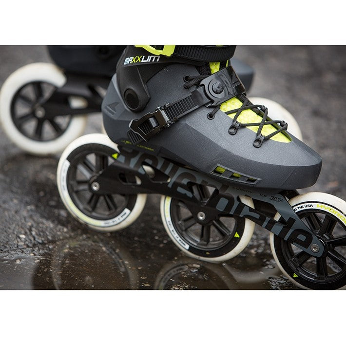 Maxxum Edge 125 3WD is the pinnacle of versatility for molded skates. Appealing to racers while maintaining the lateral support typically found in the urban category, the molded and vented boot creates advanced comfort. An extruded aluminum frame, micro-buckle closures, premium mesh liner with anatomical padding and 125mm Hydrogen wheels paired with Twincam ILQ-7 bearings provide professional performance and secure fit; an optional brake is included. Popular with Rollerblade's “Skate to Ski” program which educates athletes about the benefits of using inline skates during the off season, Maxxum Edge 125 3WD is a phenomenal skate