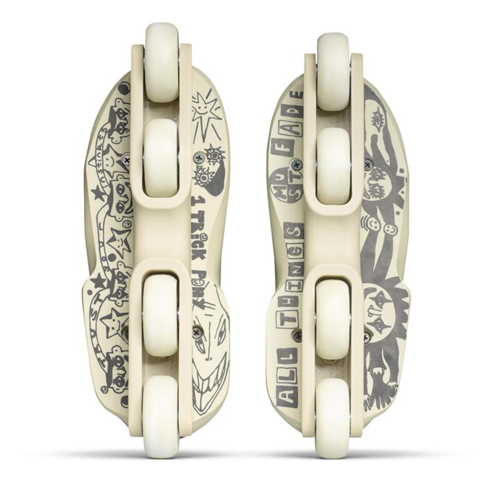 The soulplate is what differentiates any freestyle skate from an aggressive skate. It is the piece of plastic mounted between the boot and the frame and it is used solely to grind on.