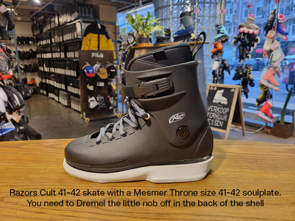 - Soulplate size 41--42, also fits on Razors Cult 41--42 if you grind of the thingy at the back of the shell