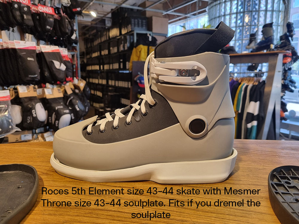 - Soulplate size 43--44, also fits on Roces 5th Element size 43--44 if you dremel the soulplate