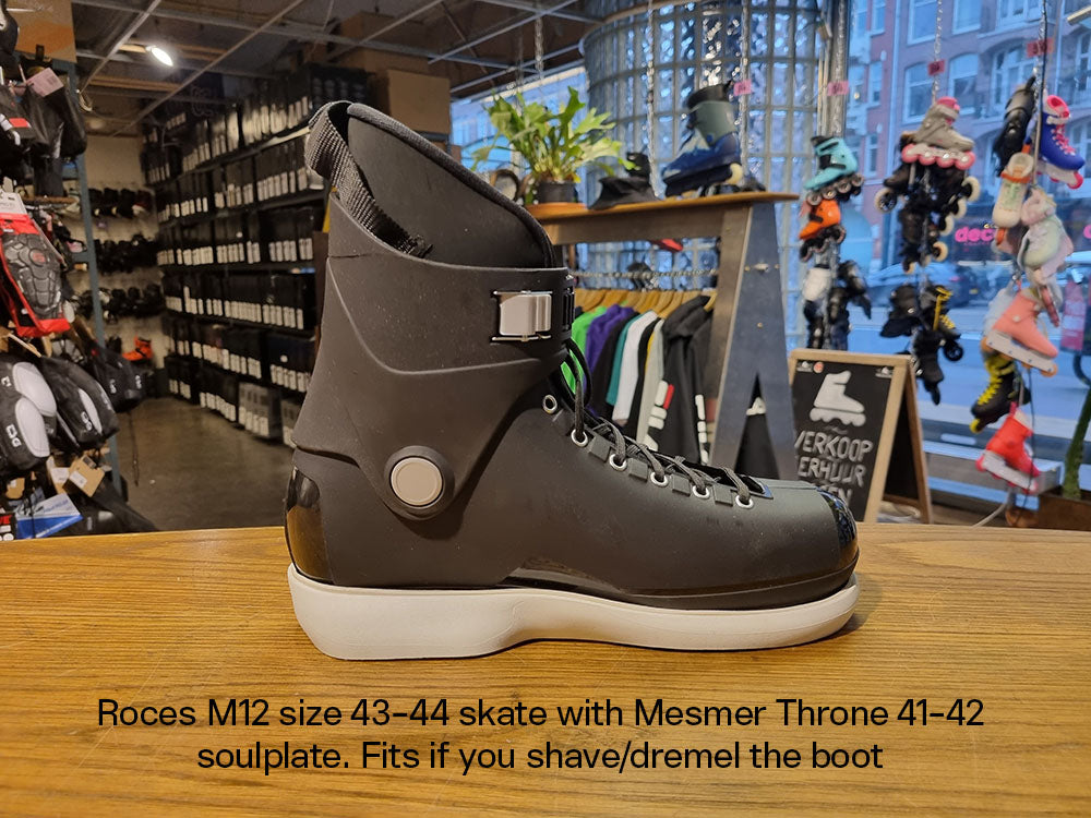 - Soulplate size 43--44, also fits on Roces M12 45--46 if you shave the boot.