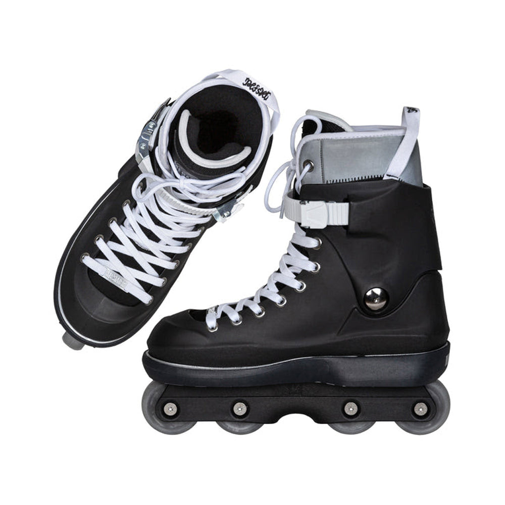 This category features all flat aggressive skates. Flat means that each skate has 4 wheels touching the ground. These skates are meant to grind with. any of these skates can be bought complete or as a boot only.