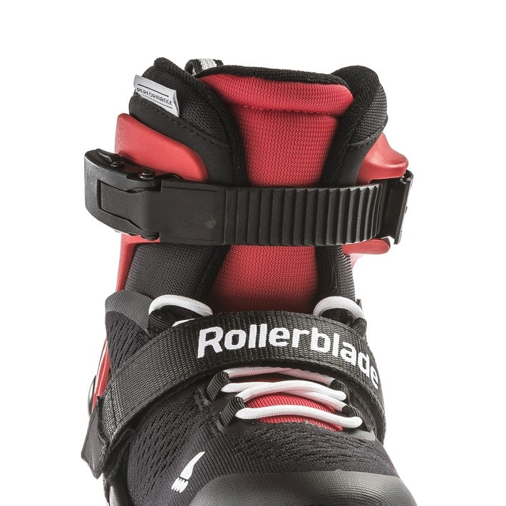 Rollerblade makes the best adjustable inline skates for kids. Microblade skates are adjustable 4 full sizes to grow with children's feet and have an easy to use adjustment system that works with the push of a button. Easy to read markers in the toe area make aligning the skates to the correct size easy and reliable. The Microblade structure provides better support and and helps improve the stability, balance and control.