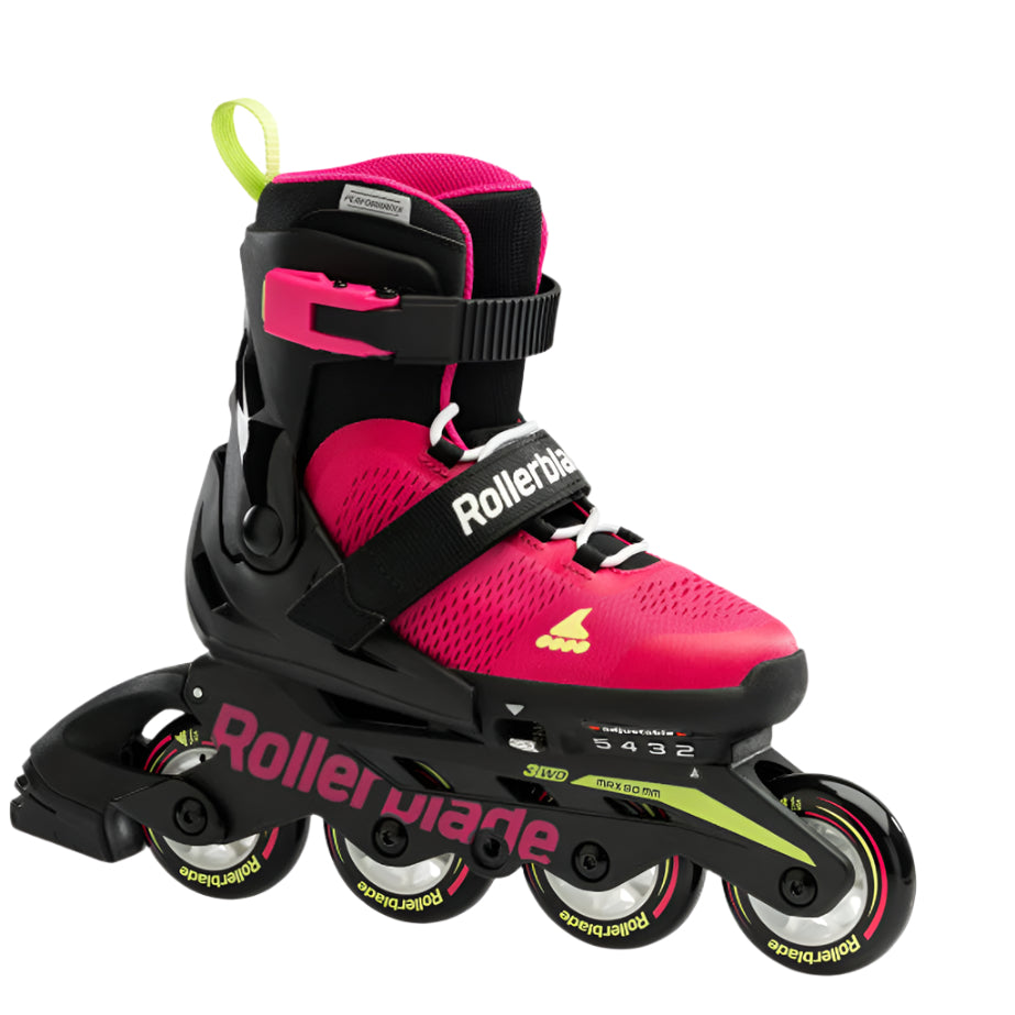 ADJUSTABLE FOUR SIZES - Microblade shell is sleek and streamlined to correctly position kids so every stride and session is optimized for skating with proper balance, control and better support.COMFORT KIDS LOVE - The Junior Fit liner makes this skate so comfortable that kids will not want to take them off. Engineered mesh creates a sock like fit with added breathability.VERSATILE, DURABLE INTEGRATED FRAME - Gets kids closer to the ground for a lower center of gravity for more control and stability. It also features a 3WD system for upgrading to 3x80mm wheel set up.ROLLERBLADE PERFORMANCE WHEELS - 72mm/80A are paired with SG3 bearings for a lasting, smooth roll with just the right amount of speed to keep the roll a little safer, but still exciting. -