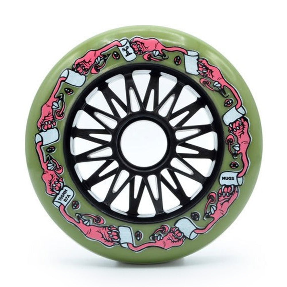 The MB Mugs are meant for being fast, capable and stable while still dropping some hot moves. Originally thought to be a size for speed or distance skaters. The creation of the NR100 Wizard Frame by Leon Basin in late 2014, once again, changed what big wheel skating could be. Used heavily in the Wizard Frame Testing series, ZONE, MB7 and MB8. These wheels are a powerful tool in a long-lasting 87a hardness for speedy flat ground skating, park skating and lengthy slides. This size was the first MB "pro" product and the first "pro" 100mm wheel in rollerblading history. 100mm wheels are absolutely not core and not certified by the Real Skaters Association of the World. We won't be mad if you skate these on tri-skates, but just don't start yelling "death to the 4th wheel."