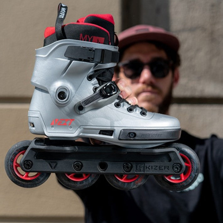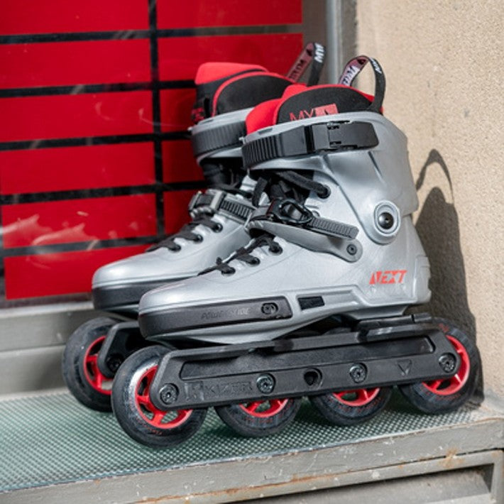 Powerslide Next Burgundy Grey 90, not just another boaring skate! How to make urban skating even more exciting? For this project Powerslide teamed up with KIZER, one of the leading frame brands and forefront of the big wheel movement for aggressive skates.