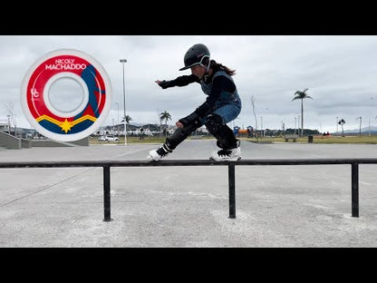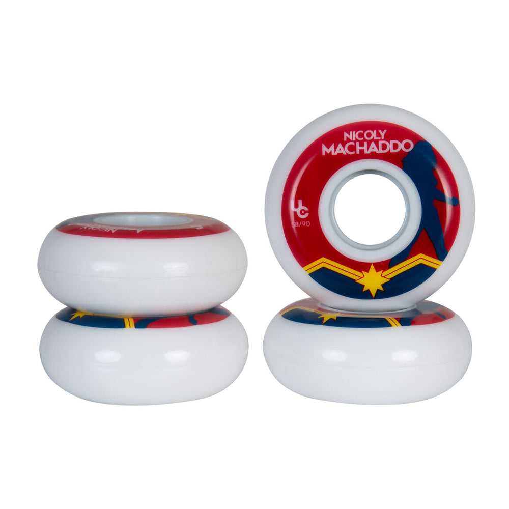 I chose Captain Marvel because I see a female figure that has a lot of representation, the film about her shows her whole story, and despite being a fictional film, I am very inspired. She is a super heroine who has a lot of courage, and has faced a lot of problems because she is simply a woman. I take the Captain Marvel movie into my life as an inspiration of courage and never giving up and I had the opportunity to register my admiration for this movie on a Pro Model wheel , which is a very great achievement and I feel that I am representing the female scene in the skates just like Captain Marvel did in the movies