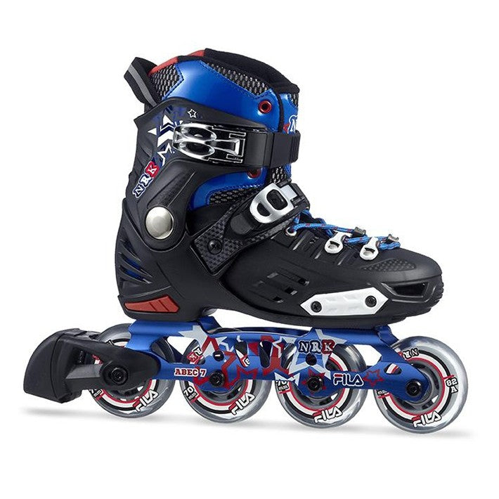 Frame: Extruded alu frame - 4 wheels - 198mm (EU 28-31), 215mm(EU 32-35), 223mm (EU 36-39) - Frontal lateral adjustment.Shell: CompositeCuff: High CutInstep band: Yes, with aluminum buckle.Shoe features: Sporty fit, preformed padding. Heel Shock Absorber.Wheels: FILA Urban 64mm/82A (EU 28-31), 70mm/82A (EU 32-35) 72mm/82A (EU 36-39)Bearings: ABEC 7Hardware: Metal axles, aluminium spacers. TPR Brake padColor: Black/blueJoin our newsletter