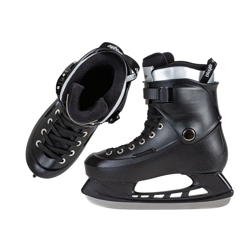 Comfortable, durable, and undeniably good-looking - it’s the Freezer Black ice skate from PLAYLIFE. Designed for beginners as well as advanced skaters, the Freezer gives you everything you need for a fun, fast time on the ice. Whether you’re on the rink or on natural ice, this is the skate for you. It all starts with a strong hard shell that’s ready to take all the bangs, falls, and bumps that come with having a great time on the ice. The sturdy shell also delivers excellent support, making it an ideal skate to push your limits and progress your skating abilities. Of course, a good ice skate has to be comfortable and the PLAYLIFE Freezer Black doesn’t disappoint. It has a well-padded, super comfortable liner with a stretchable toe, giving you the perfect right every time. The ice skate allows you to turn quickly and get explosive speed thanks to the hockey-style blade holder and a pre-sharpened, low-radius stainless steel blade that not only gives you excellent performance but also improves stability. If you’re hunting for a capable hard shell ice skate with plenty of features and a great design, look no further than the Freezer Black from PLAYLIFE.