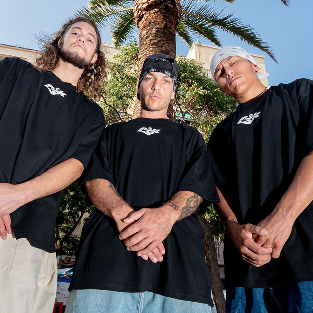 The FSK Boxy Black T-Shirt is cut from 100% mid-weight cotton 200gsm jersey in an oversized silhouette featuring our FSK logo printed across the chest and on the back.