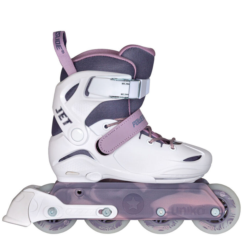 Finished in a mix of white and blackberry-inspired colors with a dual-color injected frame, the Powerslide Jet Blackberry stands out with a cool, confident look. It’s not just a kids skate — it’s motivation on wheels, encouraging young riders to push their limits, explore new paths, and fall in love with skating from day one.Highlight 1
