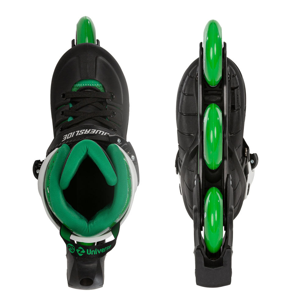 The POWERSLIDE Phuzion Universe Green inline skate for kids is a stylish, size-adjustable skate that’s supportive, fast, and lots of fun. The skate has a strong, light boot with a sleek black-green colorway that your kids will love to skate...