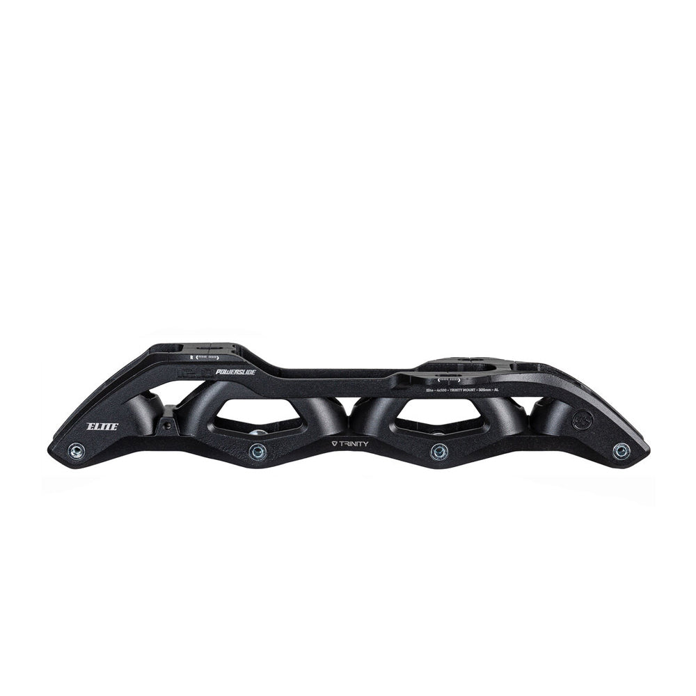 For ultimate inline skating performance, look no further than the Elite 100 - 305 Black TRI frame POWERSLIDE. Made of high-quality A356 aluminum coming in at a length of 305mm, this high-performance frame is an ideal frame for skaters with larger feet wanting to reach new speeds. Engineered around the renowned TRINITY mounting system, the frame attaches to the boot with three points of contact which creates a channel that brings the wheels close to the boot in order to bring the wheels as close to the foot as possible. What you get is a low center of gravity, excellent control, and efficient power transfer with every stride while reducing vibrations. No two skaters are the same and the POWERSLIDE Elite 100 - 305 Black TRI frame features the X-slot mounting slot that enables you to shift the frame in all directions to match your individual skating style. Whether you’re into inline urban freeride, or fitness skating, this innovative frame is a great option.