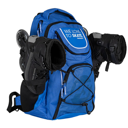 The Powerslide WeLoveToSkate backpack provides the best possible storage and security for your precious skates. A skate backpack should meet various criteria. Powerslide bags have been specifically designed for skates to hold and carry securely. Additional features have been considered. Made...