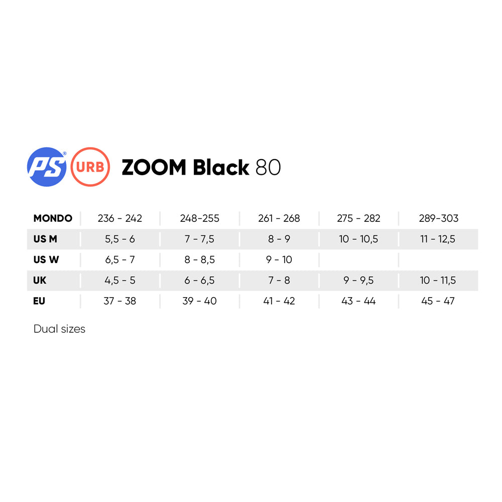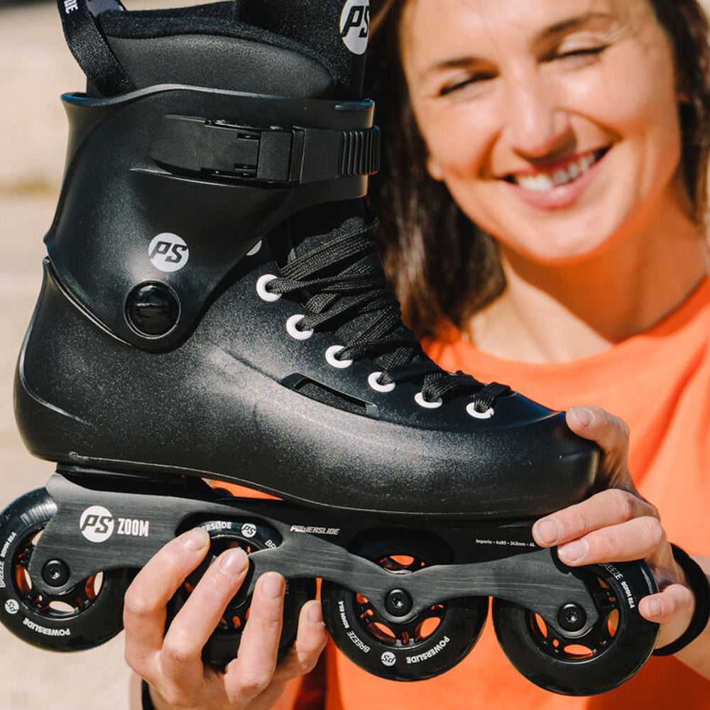 Fun and affordable, anyone can enjoy inline skating with the POWERSLIDE Zoom 80. This capable urban freeride inline skate comes with lots of features for a great price, so there’s no reason not to skate. Great for beginner and intermediate skaters, the Zoom Black 80 has a durable hardboot and stable cuff that provides excellent support and just the right amount of flex. The comfortable Powerslide dual-fit liner provides great cushioning, while the lacing closure system keeps your foot perfectly in place.(https://youtube.com/shorts/zqhofDc-zcQ?feature=shared) The Zoom Black 80 from POWERSLIDE comes with an extruded, stamped and CNC machined frame riveted to the boot. Providing a stable, smooth ride, the skate rolls 4x80mm PU-wheels combined and WICKED bearings, allowing you to cruise the city with ease. Budget-friendly lightweight, supportive, and comfortable - there’s a lot to like about the POWERSLIDE Zoom Black 80 inline skate. Attention: for brake assembly 6mm axles are required additionally! -